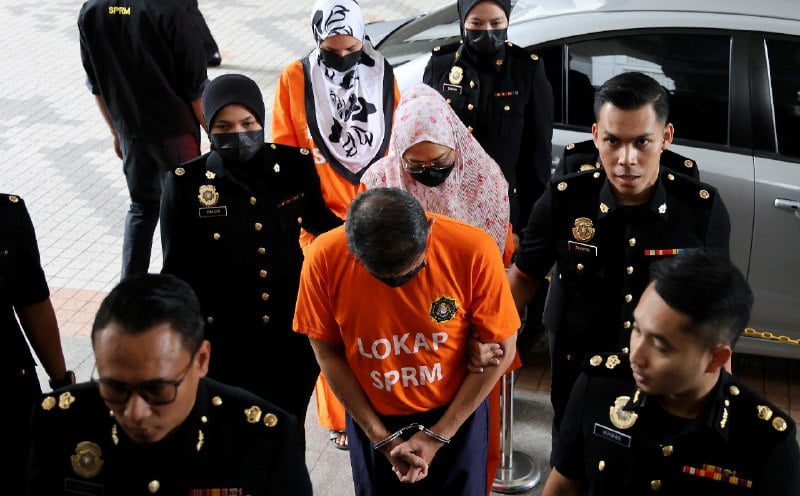 Ketiga-tiga mereka dibawa ke Mahkamah Putrajaya pagi tadi untuk proses permohonan reman bagi membantu siasatan kes rasuah itu selepas ditahan di Ibu Pejabat SPRM pada jam 3 petang semalam.Mereka sebelum itu tiba di Kompleks Mahkamah Putrajaya pada jam 10.02 pagi tadi dengan menaiki dua kenderaan SPRM.