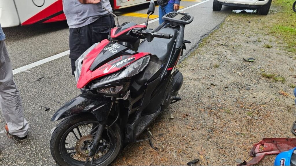 Kemalangan berlaku kira-kira pukul 9.20 pagi tadi di Kilometer 92, Jalan Kuala Terengganu – Kuantan dekat Kampung Nyior, Paka.