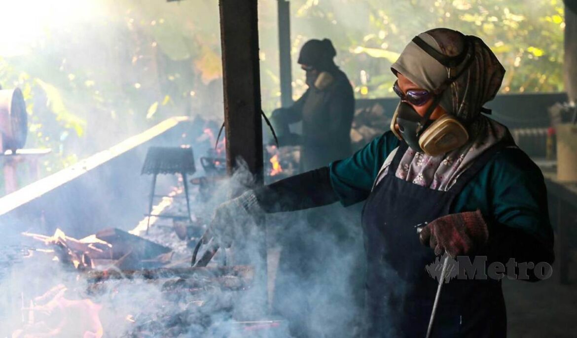 KUALA TERENGGANU: Safety particulate respirators (topeng) dan gogal merupakan peralatan ampuh buat pengusaha kuih tradisional akok, kuih bakar kelapa ‘berperang’ dengan asap bagi memudahkan proses pembakaran dilakukan tanpa memedihkan mata.