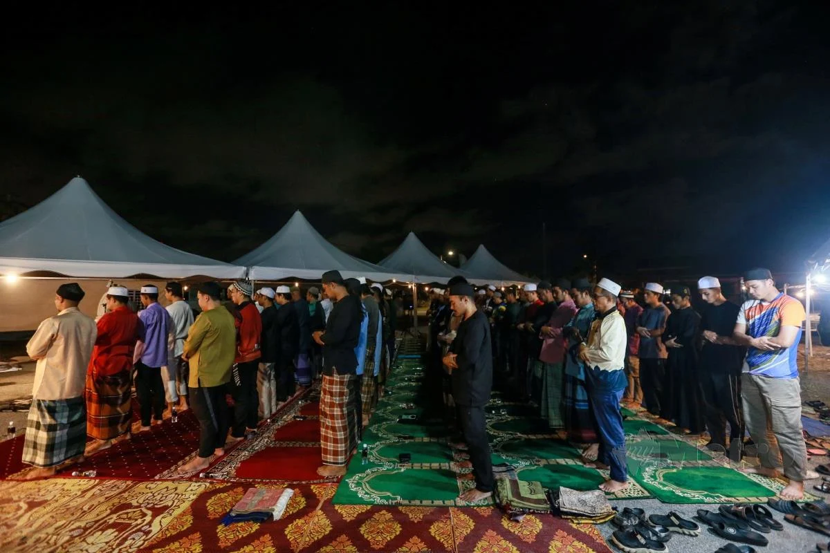 KUALA TERENGGANU: Solat Isyak dan Tarawih disifatkan paling ‘rare’ berikutan hanya menggunakan kanvas, karpet serta berbumbungkan langit yang dilakukan di tanah lapang di kawasan, Bukit Bayas, dekat sini, sejak awal Ramadan lalu.