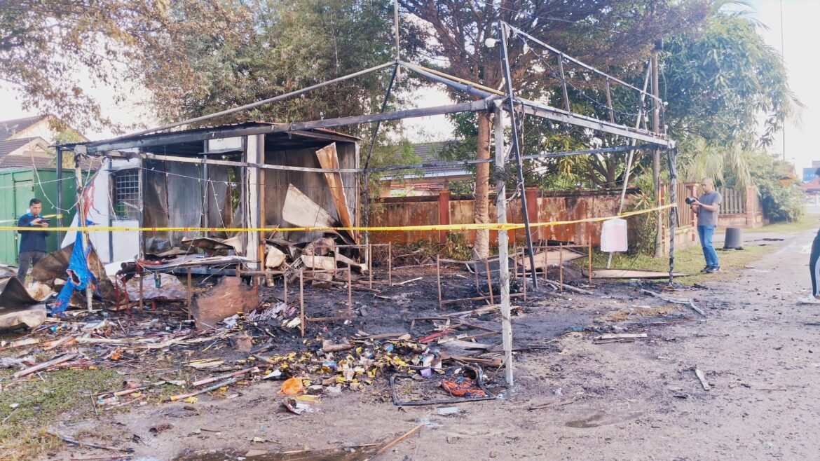 “Pukul 3.40 pagi, saya keluar nak pegi cari makanan untuk sahur, lepas tu tengah bungkus makanan dapat satu call yang kata kedai terbakar. Lepas itu saya bergegas pulang melihat gerai mercun,” katanya. – Suara Timur