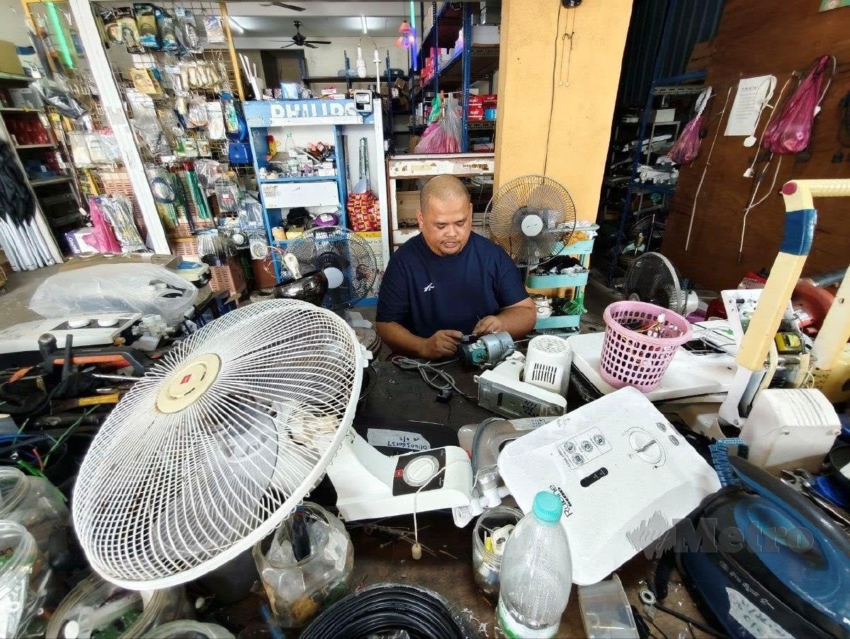 Pemilik kedai membaiki barangan elektrik di Kampung Bukit Kubang Jambu, Muhammad Faizan Ali, 45, berkata, kebanyakan pelanggan datang dengan masalah kipas yang tidak berfungsi dengan baik atau berputar perlahan.