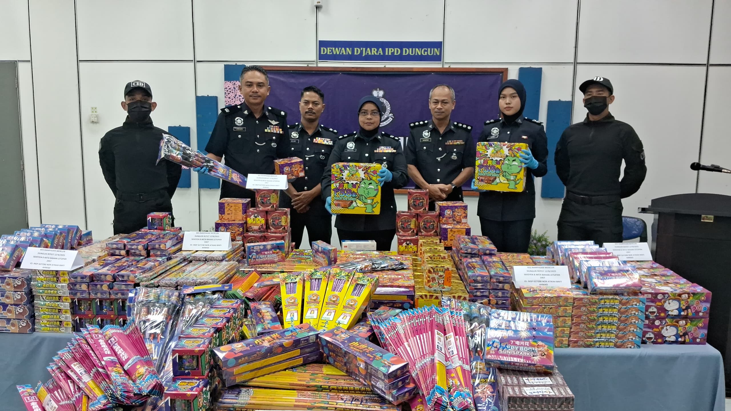 “Siasatan percaya bekalan mercun dan bunga api termasuk jenis diharamkan di pasaran mahu dijual di sekitar daerah ini sewaktu bulan Ramadan dan Syawal tidak lama lagi,” katanya pada sidang akhbar di Ibu Pejabat Polis Daerah Dungun di sini hari ini.