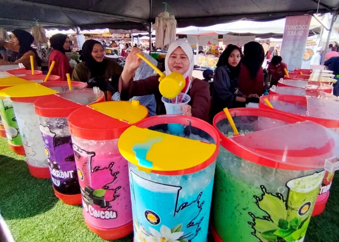 Katanya, dengan jualan lebih 100 jenis air itu, pendapatan hariannya meningkat tujuh kali ganda berbanding jualan hari biasa sehingga mencecah RM7,000 sehari. – Utusan