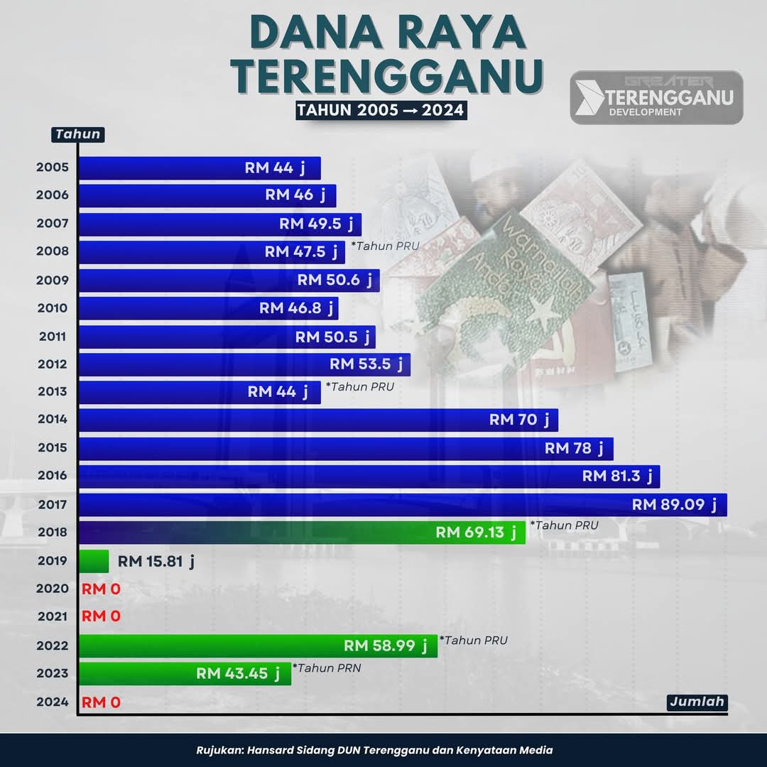 Sementara itu, menerusi komen yang dimuat naik seorang pengikut Facebook Geater Terengganu dikenali sebagai Nasyriq Ifwan berkata, “Dana Raya tradisi rakyat tranung yg sudah dilupakan kerajaan hari ning.”