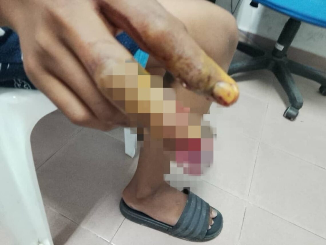Kejadian yang berlaku kira-kira pukul 8 malam itu turut menyebabkan kedua-dua jari Adam Aiman Noor Kamarul Azwan, 14, patah.