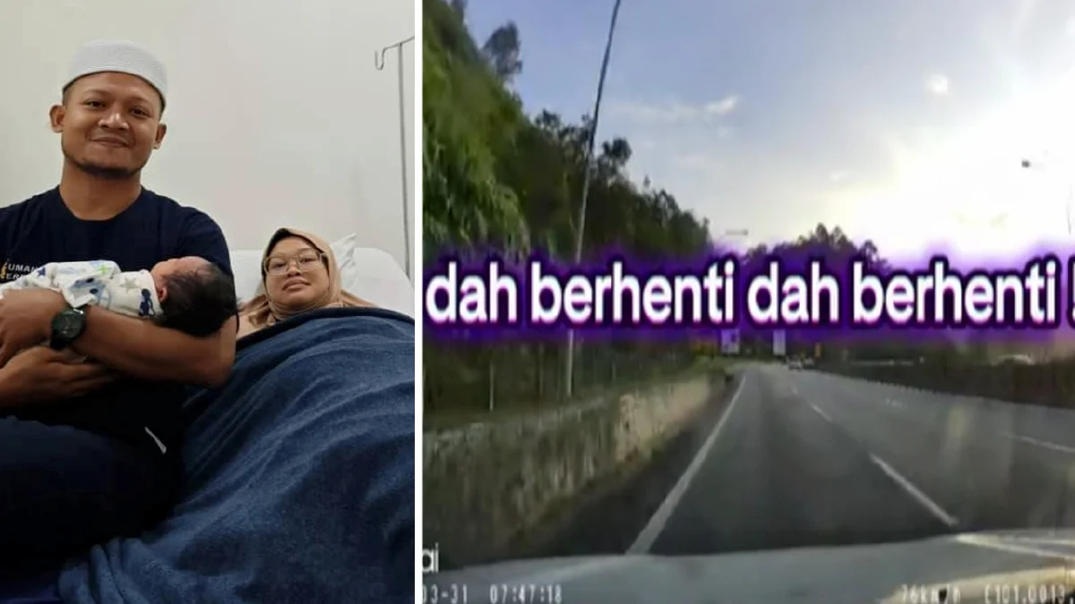 “Ketika dalam perjalanan, isteri tak tahan nak bersalin jadi saya berhenti di tepi jalan dekat kilometer (km) 258.1 dan waktu itu sudah nampak rambut bayi keluar.