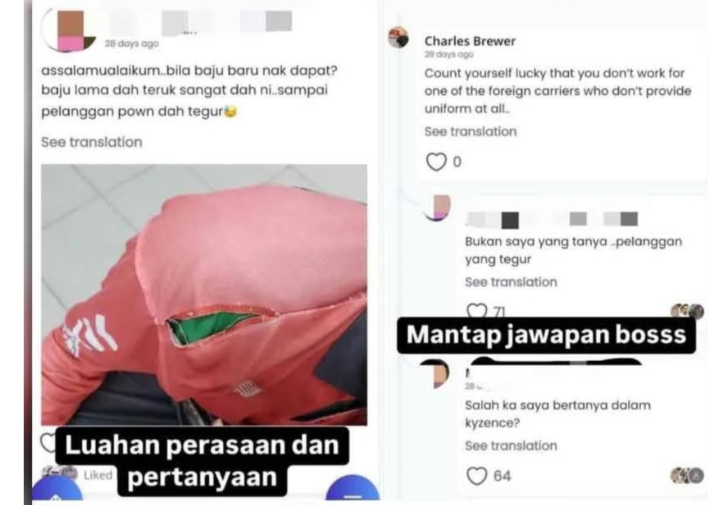 Baru-baru ini, seorang kakitangan Pos Malaysia memuat naik luahan hati tentang pakaian seragamnya yang rosak dan mempersoalkan bila akan menerima pakaian baharu.