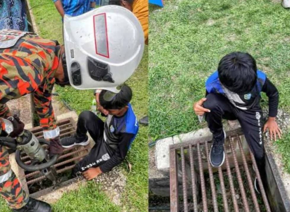Dalam kejadian kira-kira jam 11.18 pagi, murid berusia 11 tahun itu dipercayai tergelincir ketika melalui jeriji longkang pada waktu rehat sebelum kakinya tersepit di celah besi tersebut.