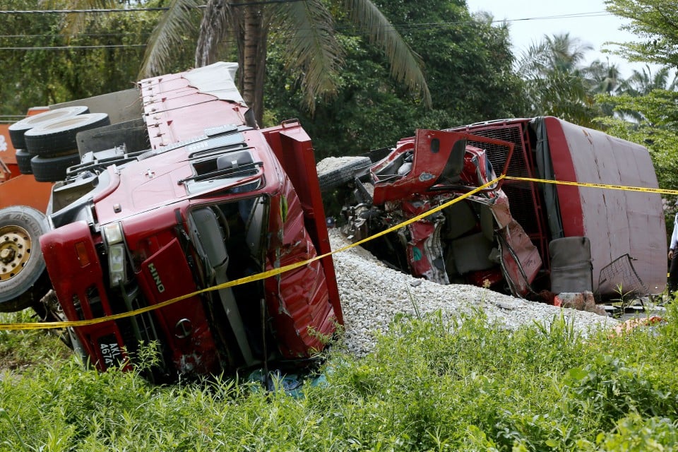 “Tiba di lokasi kejadian, lori FRU Unit 5 dirempuh daripada hadapan oleh lori membawa muatan batu yang dipercayai mengalami kegagalan fungsi stereng,” katanya.