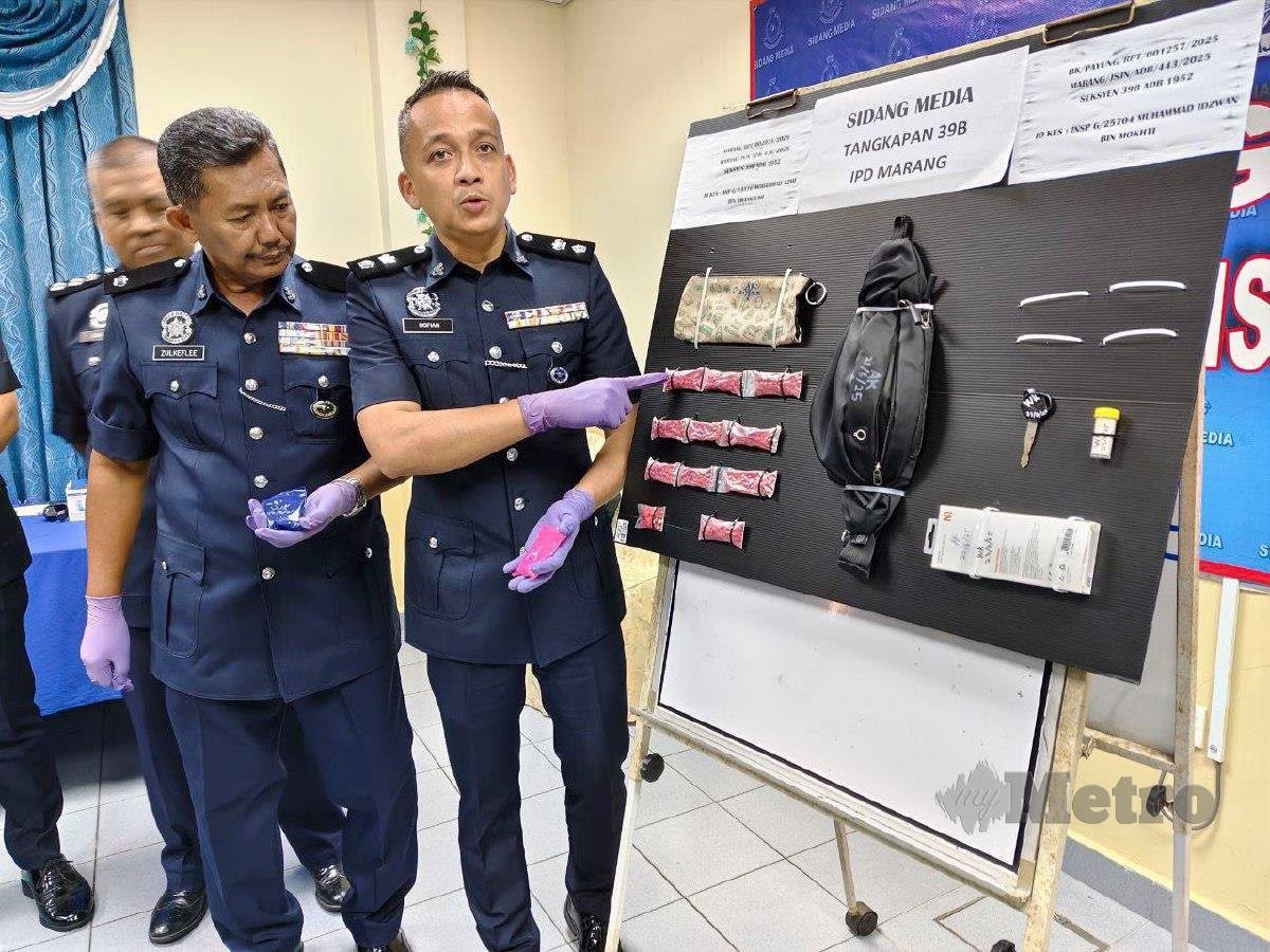 “Polis merampas 51.06 gram pil kuda dan 1.08 gram syabu dengan nilai pasaran RM3,500 serta menyita sebuah motosikal Yamaha 125Z bernilai kira-kira RM10,000. Ketiga-tiga suspek direman selama tujuh hari bermula 17 hingga 23 Jun,” katanya dalam sidang media di Ibu Pejabat Polis Daerah Marang, di sini, hari ini.
