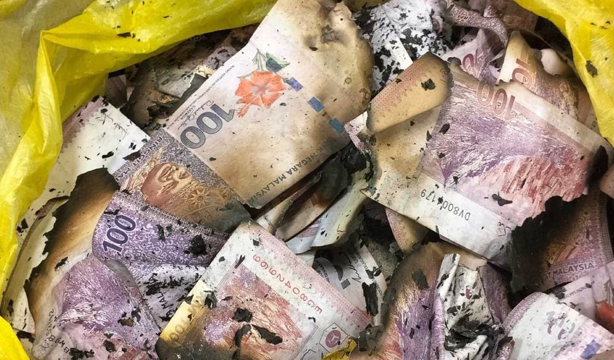 “Hasil pemeriksaan dijalankan di bilik mandi berkenaan, SPRM menemui wang kertas RM100 berjumlah RM 1 juta yang sudah terbakar,” katanya.
