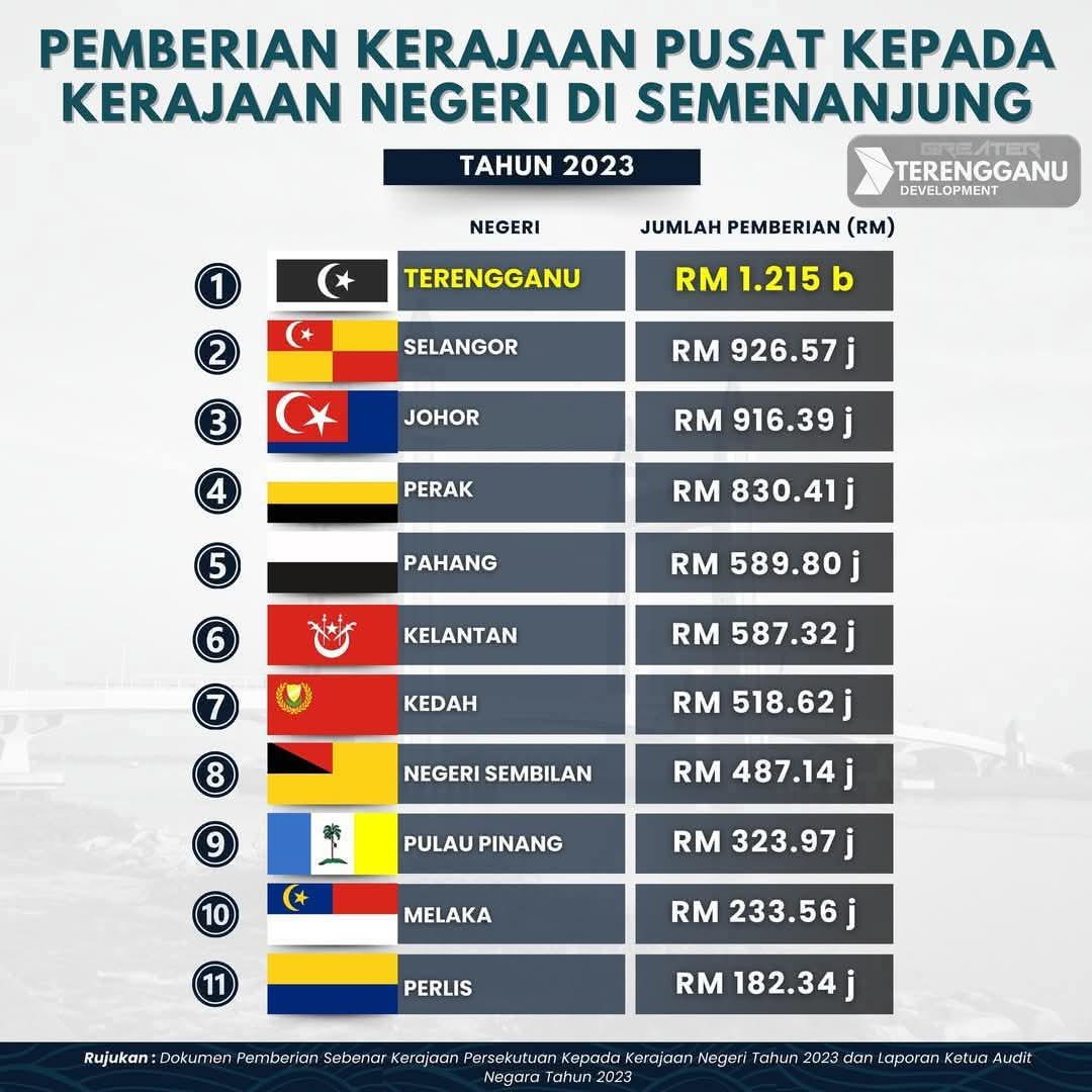 KUALA TERENGGANU: Laporan Ketua Audit Negara 2023 menunjukkan kerajaan Terengganu telah menerima peruntukan lebih RM1.2 bilion daripada kerajaan Pusat pada tahun tersebut.