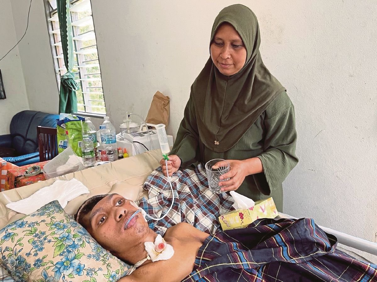 “Hati ibu mana yang tidak sedih apabila melihat anak yang dulunya sihat, kini terlantar dan memerlukan penjagaan rapi termasuk menyedut kahak bagi mengelakkan pernafasannya terganggu selain perlu diberi minum susu khas melalui saluran tiub pada hidung.