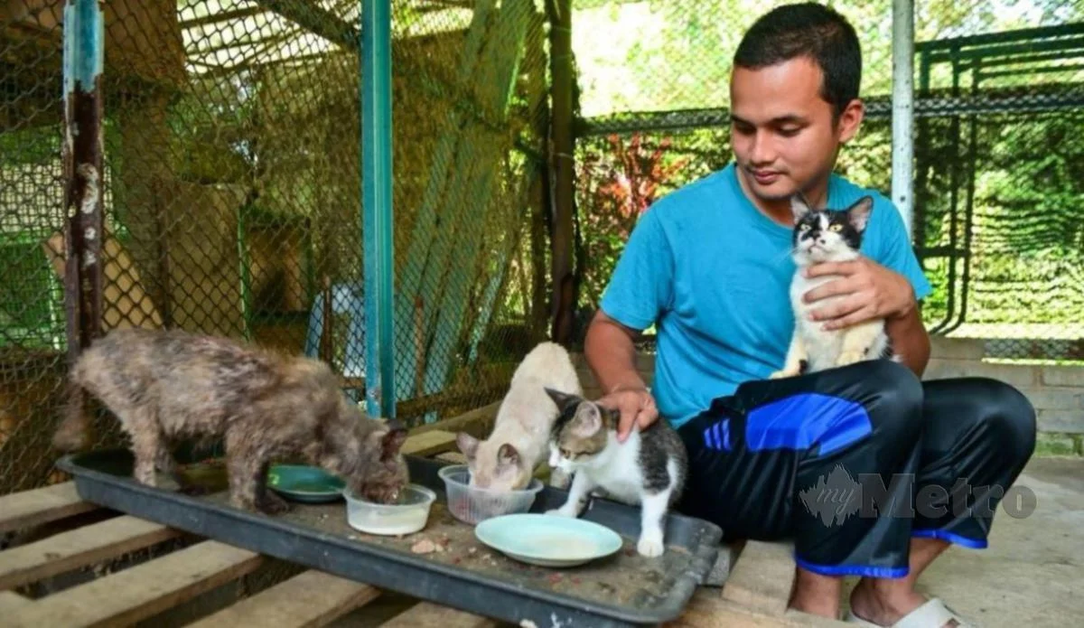 KUALA BERANG: Seorang pemuda sanggup menghabiskan separuh daripada wang gajinya sebagai pengawal keselamatan setiap bulan bagi memelihara kucing jalanan.