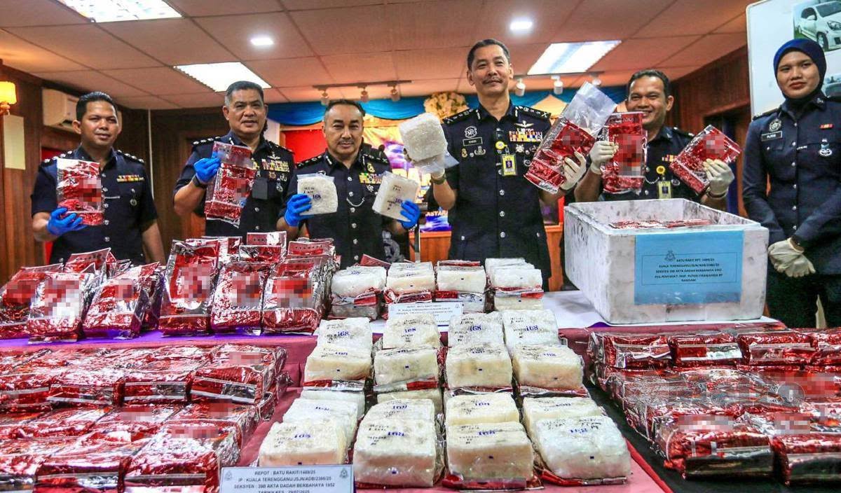 KUALA TERENGGANU: Polis Kontinjen Terengganu merampas 188 bungkusan berisi ketulan kristal dipercayai dadah jenis syabu seberat 198.9 kilogram dengan anggaran RM6.3 juta.