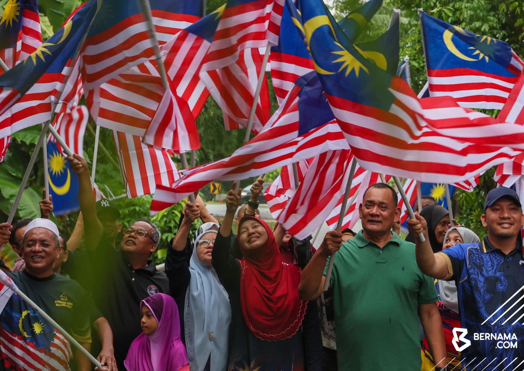 KUALA TERENGGANU: Kira-kira 50 buah rumah di Kampung Sekati, Manir di sini mengibarkan Jalur Gemilang pada Program Satu Rumah Satu Jalur Gemilang sempena sambutan Hari Kebangsaan 2025, semalam.