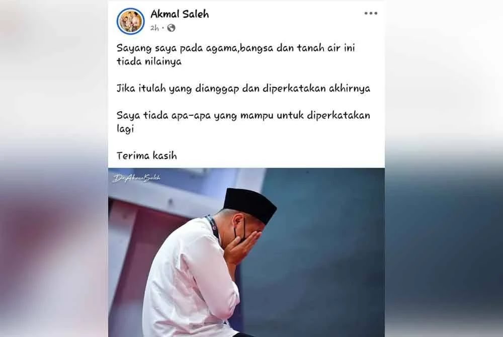 “Jika itulah yang dianggap dan diperkatakan akhirnya. Saya tiada apa-apa yang mampu untuk diperkatakan lagi. Terima kasih,”tulisnya pada hantaran terbabit.