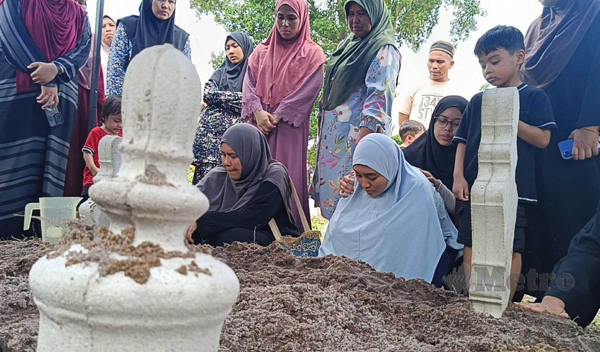 Lebih 100 orang termasuk ahli keluarga, sanak saudara dan rakan taulan serta penduduk mengiringi jenazah ke tanah perkuburan bagi memberi penghormatan terakhir.