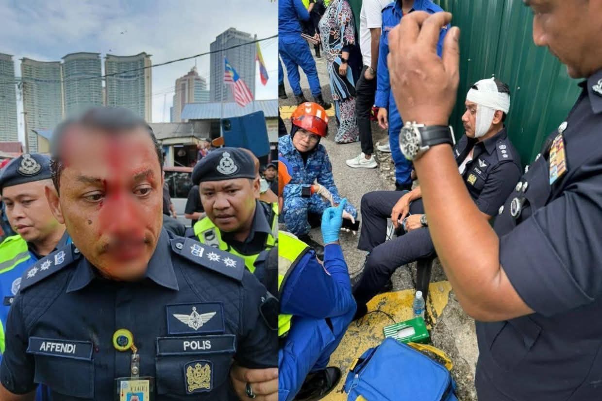 KUALA LUMPUR: Ketua Polis Daerah (OCPD) Dang Wangi, Asisten Komisioner Suzilme Affendy Sulaiman cedera ketika mengawal keadaan sewaktu operasi pengosongan bangunan di Kampung Sungai Baru, di sini, hari ini.