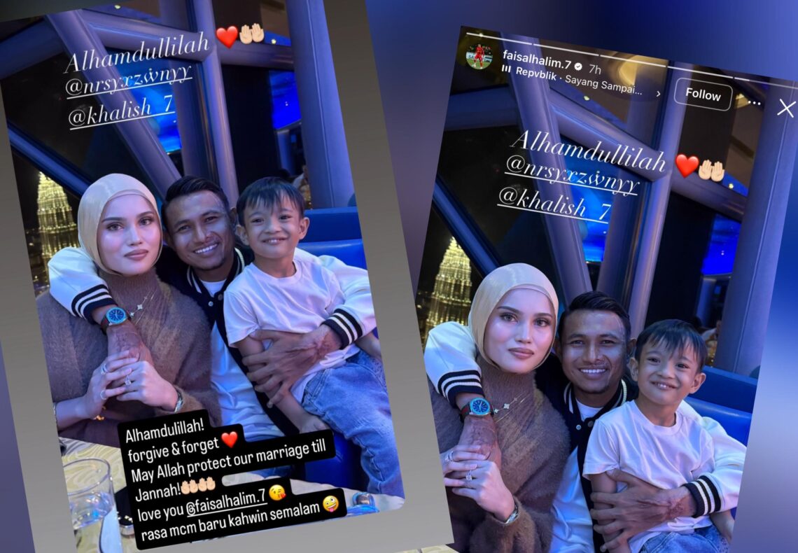 Nur Syazwani dilihat turut berkongsi semula gambar dia bersama Faisal serta anak mereka selepas foto keluarga itu dimuat naik dahulu oleh Bintang Selangor FC tersebut.