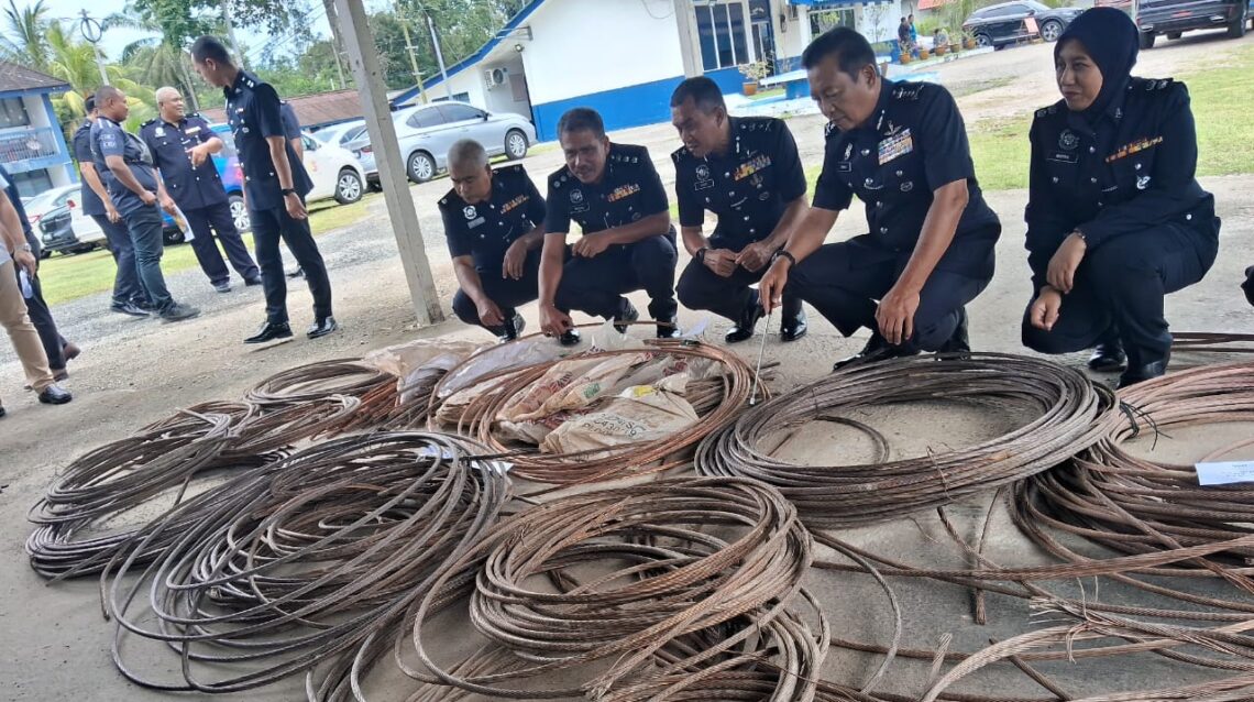 “Dalam operasi itu polis turut merampas dua buah lori, sebuah kereta jenis Proton Wira, kabel tembaga lebih 1,000 kilogram, mesin pemotong kabel, ‘grinder’ dan ‘bolt cutter’ dengan nilai sitaan lebih RM100,000,” katanya dalam sidang akhbar di Balai Polis Lanchang di sini hari ini.