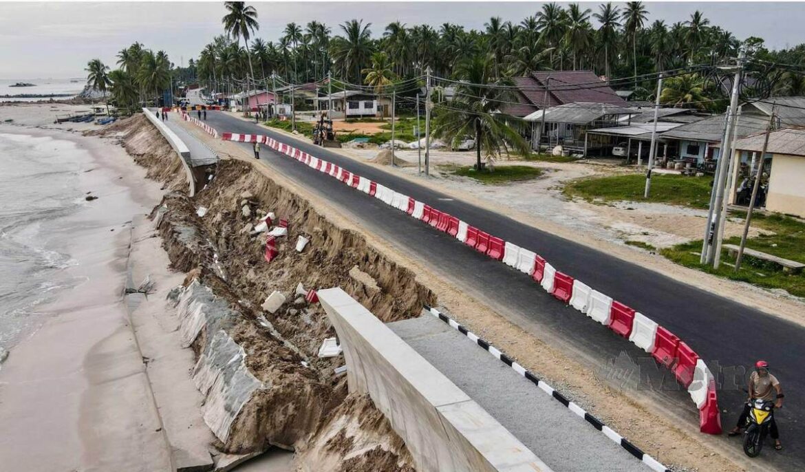 “Projek pembinaan jalan dan penghadang ombak di laluan sepanjang 280 meter yang runtuh disebabkan fenomena Monsun Timur Laut (MTL) sepatutnya siap pada November ini.