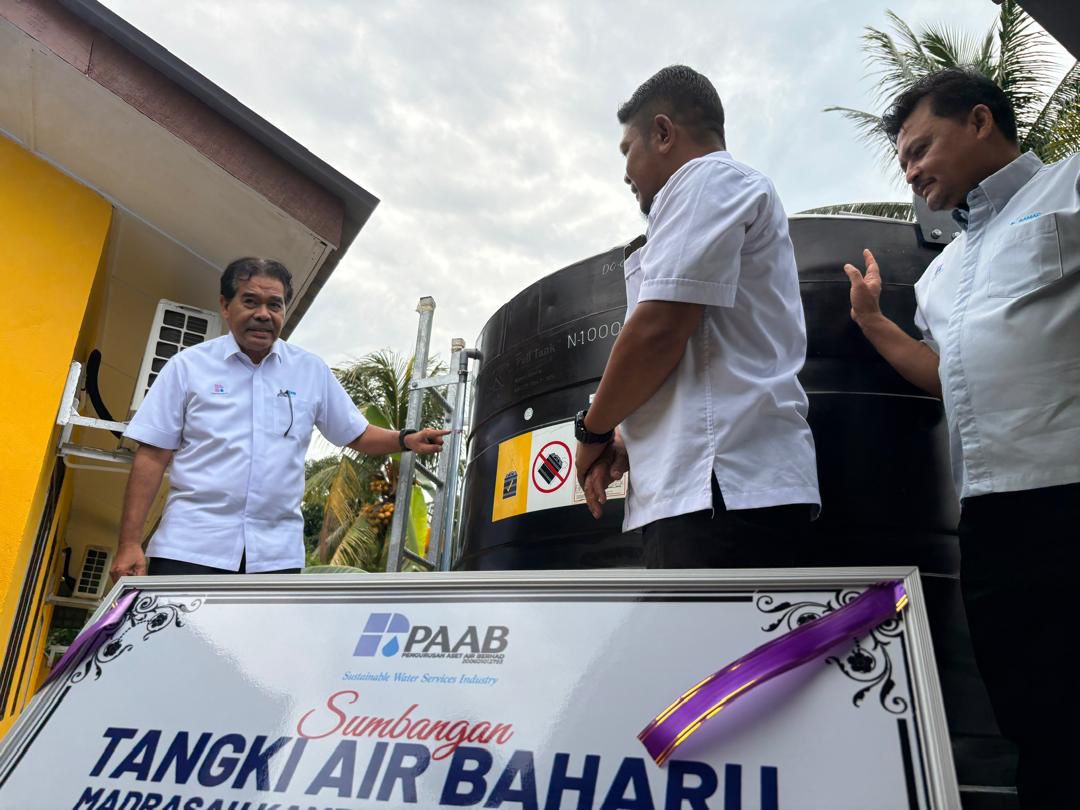 “Projek itu bertujuan menaik taraf sistem bekalan air di Kelantan untuk mengatasi masalah tekanan air rendah dan meningkatkan margin rizab air terawat,” katanya ketika ditemui pemberita pada Majlis Ramah Mesra Santuni Madani Bersama PAAB sempena pembinaan tangki air baharu berkapasiti 4,500 liter juta di Madrasah Kampung Lubok Simpul, Mukim Pahi, di sini hari ini.