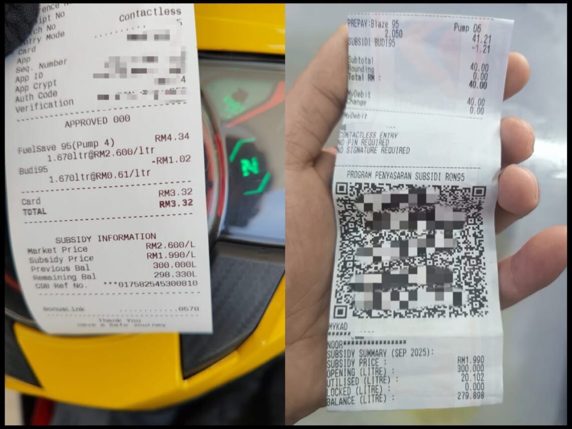 “Alhamdulillah, isi minyak Budi Madani RON95, bayar RM35 dapat minyak (petrol RON95) nilai RM45.73, jadi subsidi dapat RM10.73.