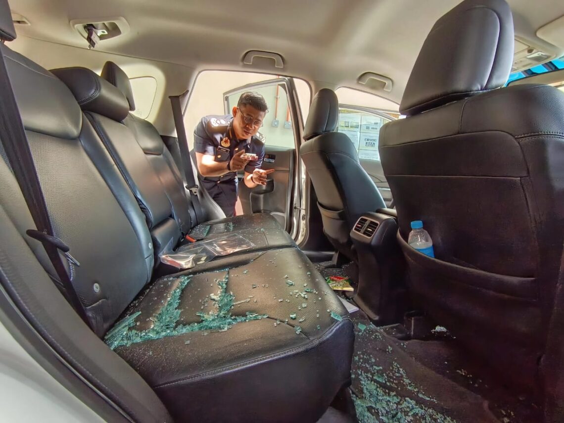 “Suspek dilihat telah menghentak cermin hadapan,sisi dan penumpang kenderaan tersebut dengan objek panjang seakan-akan sebatang kayu.