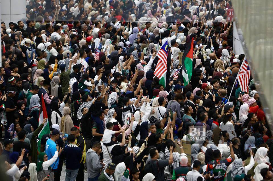 Sejak jam 8 malam, suasana di lokasi gamat dengan laungan ‘Free Palestine’, ‘Hidup Gaza’, ‘Hancur Israel’ serta takbir, selain nyanyian lagu patriotik ‘Inilah Barisan Kita’ dengan diiringi kibaran bendera Malaysia dan Palestin.
