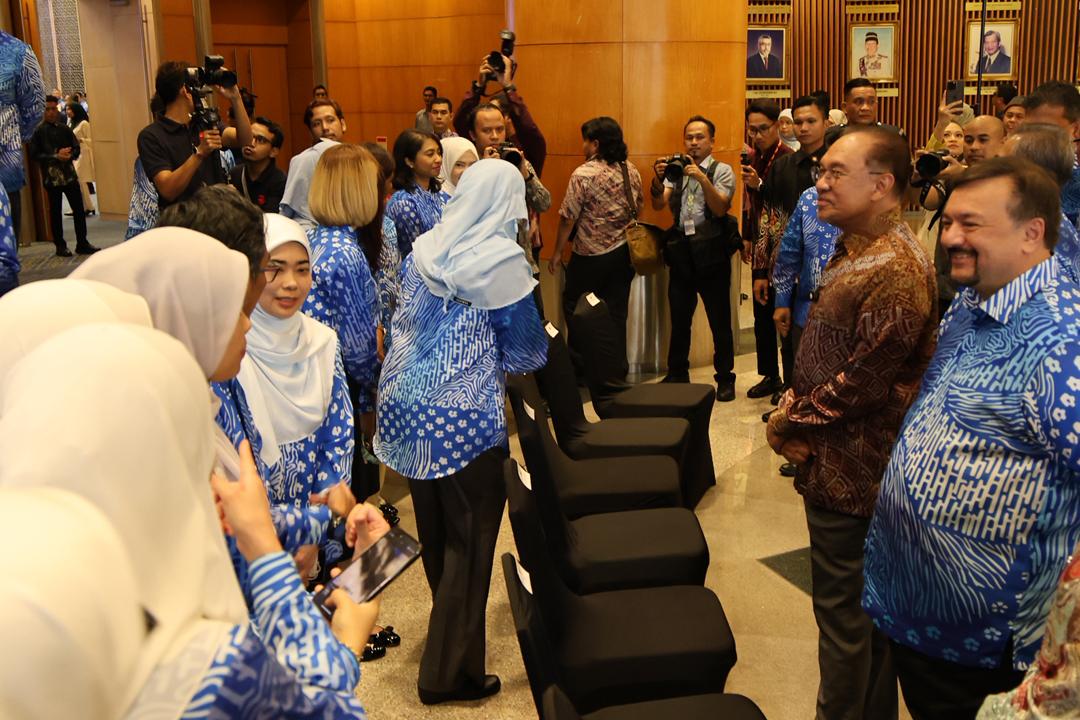 Semasa tinjauan kira-kira setengah jam itu, Perdana Menteri turut beramah mesra dengan petugas yang terlibat dalam penyediaan Belanjawan 2026 di Dewan Utama di lobi Kementerian Kewangan.