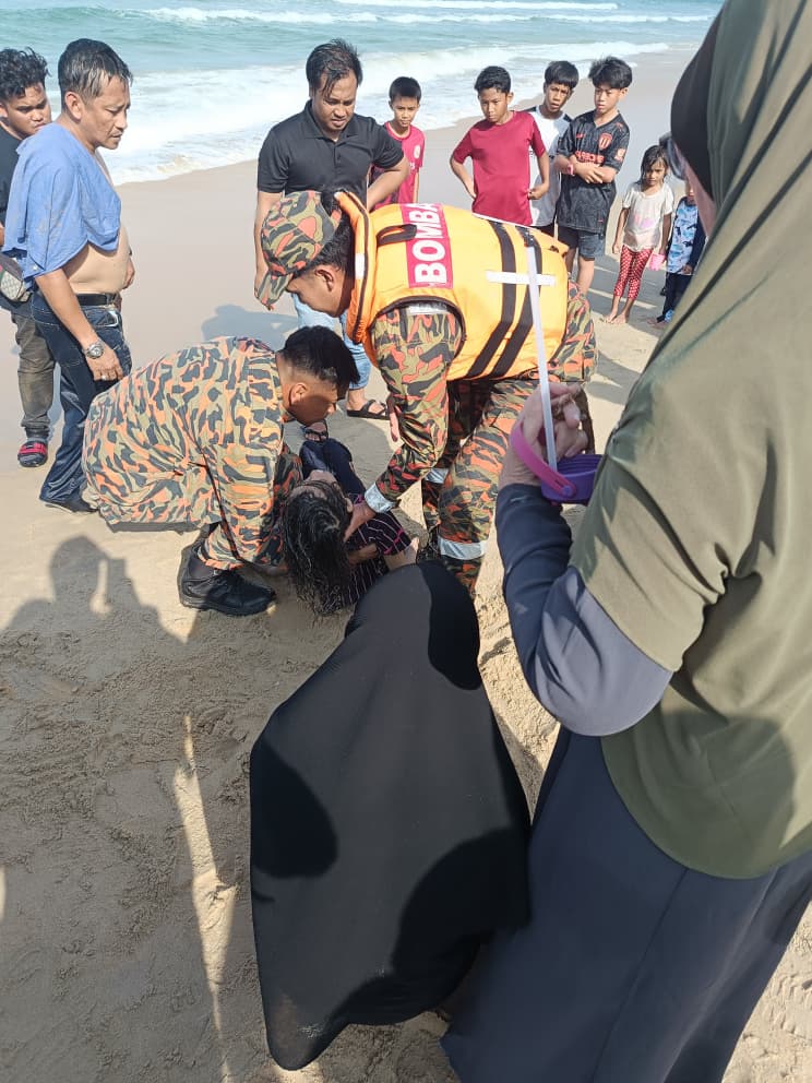 “Kejadian dipercayai berlaku ketika mereka mandi, tiba-tiba mereka telah ditarik ombak ke tempat yang lebih dalam menyebabkan lima daripada mereka hampir lemas.