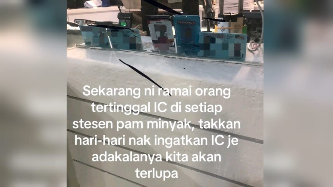 Menerusi hantaran pengguna TikTok @Masterkie1971, menunjukkan pihak stesen minyak meletakkan MyKad yang tercicir di kaunter pembayaran bagi memudahkan urusan pemilik kad pengenalan untuk mencarinya.