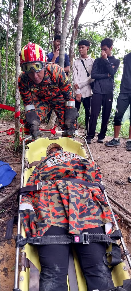 “Difahamkan, mangsa yang berusia 49 tahun itu ditemani rakannya mendaki bukit tersebut. Ketika melalui laluan berbatu, mangsa tiba-tiba tergelincir menyebabkan salah satu jari kakinya dipercayai patah hingga menyukarkan mangsa untuk berjalan.