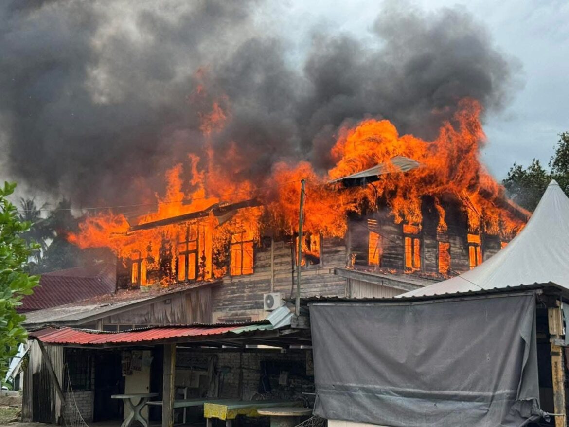 Katanya, bangunan jenis separuh kekal dua tingkat di Kampong BakauTinggi musnah 70 peratus dalam kebakaran pukul 10 pagi.