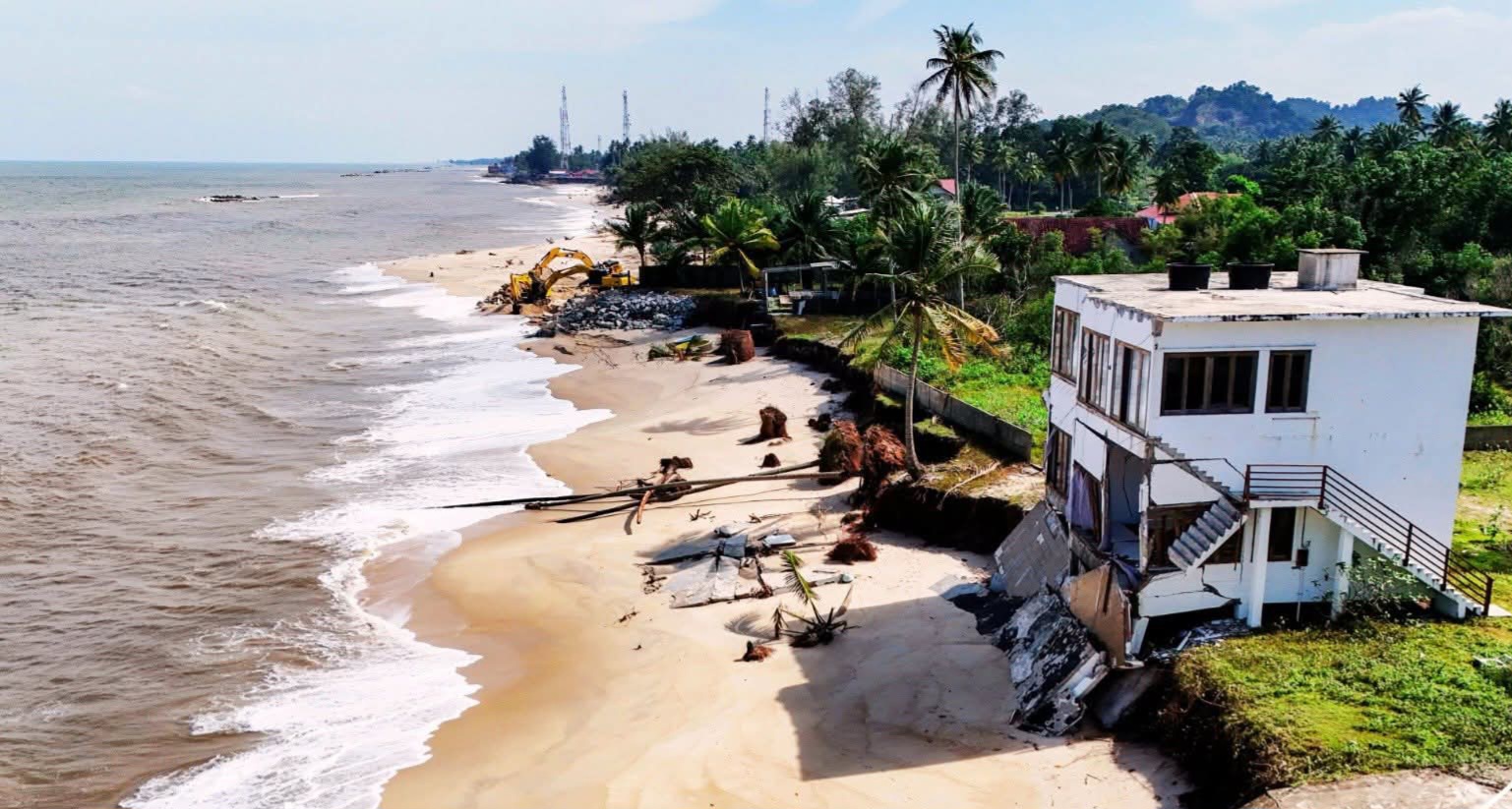 Pengguna media sosial, @DrHairil TTS menerusi hantarannya mendakwa, dianggarkan bahawa kira-kira 100 hingga 150 meter pantai telah pun tiada.