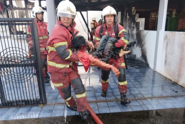 “Seorang mangsa lelaki berusia lingkungan 20an berjaya dibawa keluar. Dia ditemui dalam keadaan cedera di kawasan pintu dapur pada jam 10.21 pagi.