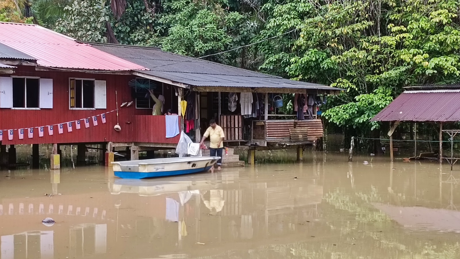 Seorang penduduk, Anita Sulong berkata, dia membuat persiapan awal berpindah dengan mengemas pakaian selepas kawasan kampung ini mula dinaiki air semalam.