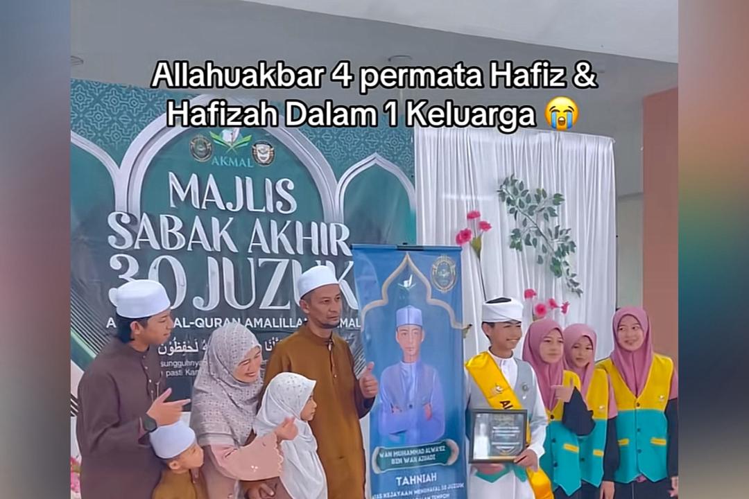 PETALING JAYA: Kejayaan empat beradik dalam sebuah keluarga mencatat sejarah tersendiri apabila kesemua mereka berjaya mendapatkan gelaran al-Hafiz dan al-Hafizah Al-Quran.