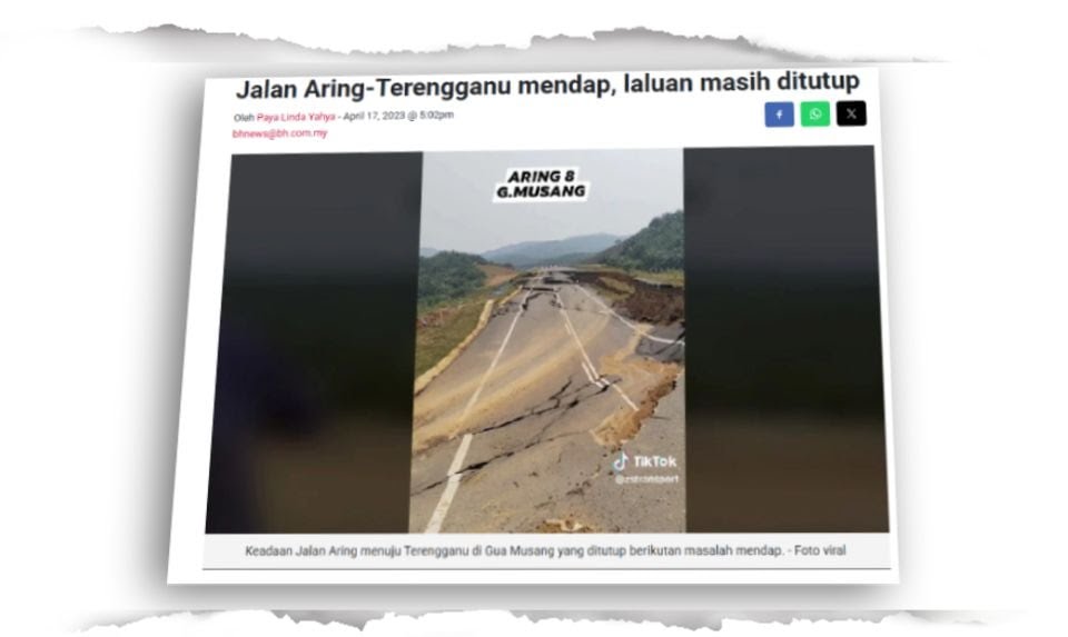 “Tindakan pengguna lalu jalan terbabit boleh membahayakan keselamatan kerana laluan itu tidak selamat digunakan. Nasihat saya, pengguna sentiasa patuh arahan yang sudah dikeluarkan. Arahan penutupan jalan berkuat kuasa sejak tiga tahun lalu, jadi jangan sesekali ambil risiko dan membahayakan nyawa,” katanya. – Berita Harian